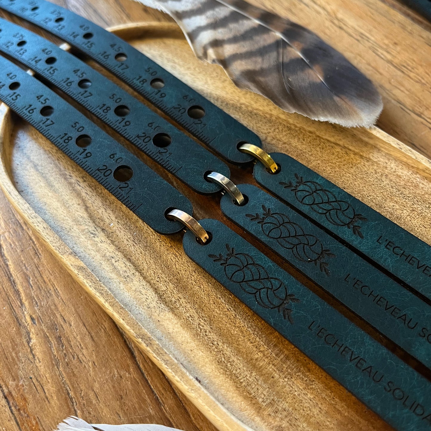 Ce bracelet ne se contente pas d’être un bijou raffiné : il est également un outil pour les tricoteurs et tricoteuses. Intégré dans son design, il comporte une partie mètre permettant de mesurer votre échantillon ou l’avancée de votre projet, ainsi qu’une jauge à aiguilles allant jusqu’à 6 mm.