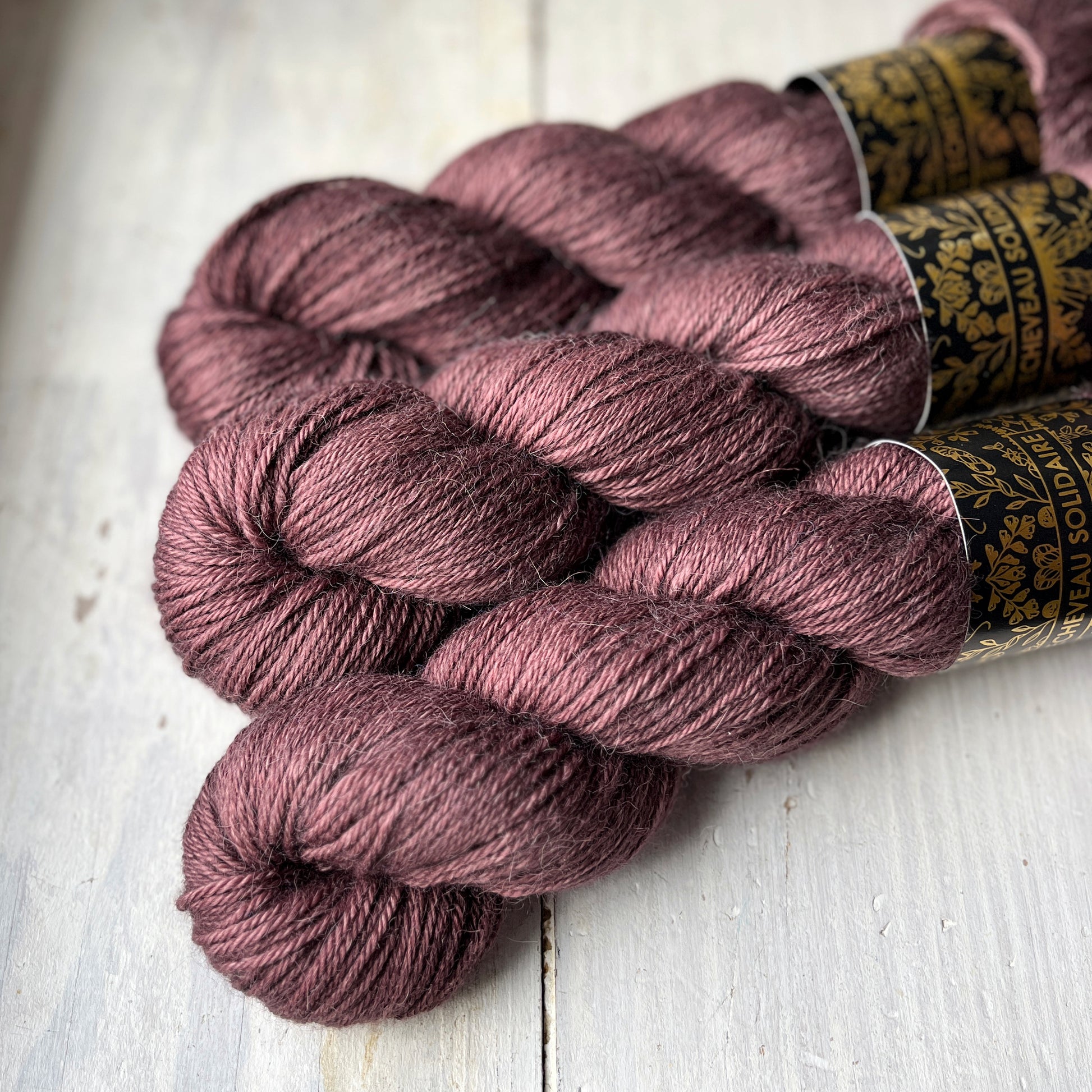 Harper: This colorway is named for Harper, a 4-year-old girl living in the United States suffering from McCune-Albright syndrome. It has a delicious raspberry burgundy tint, but the skeins are less nuanced than in the photos.