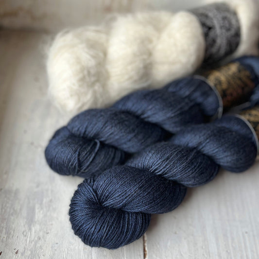 Kits containing all the yarn you'll need to knit the VAGUE À L'ÂME (Melancholy) shawl from Aline Valentin (@byalinevalentin on social).