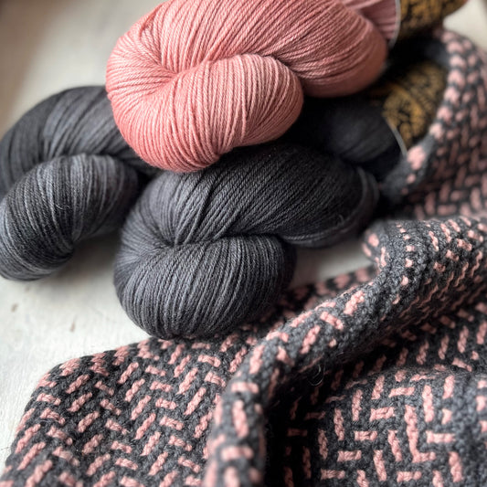 Kits containing all the yarn you'll need to knit the DESTINATION UNKNOWN mosaic shawl by designer Cheryl Faust. Choose your favorite color combination!