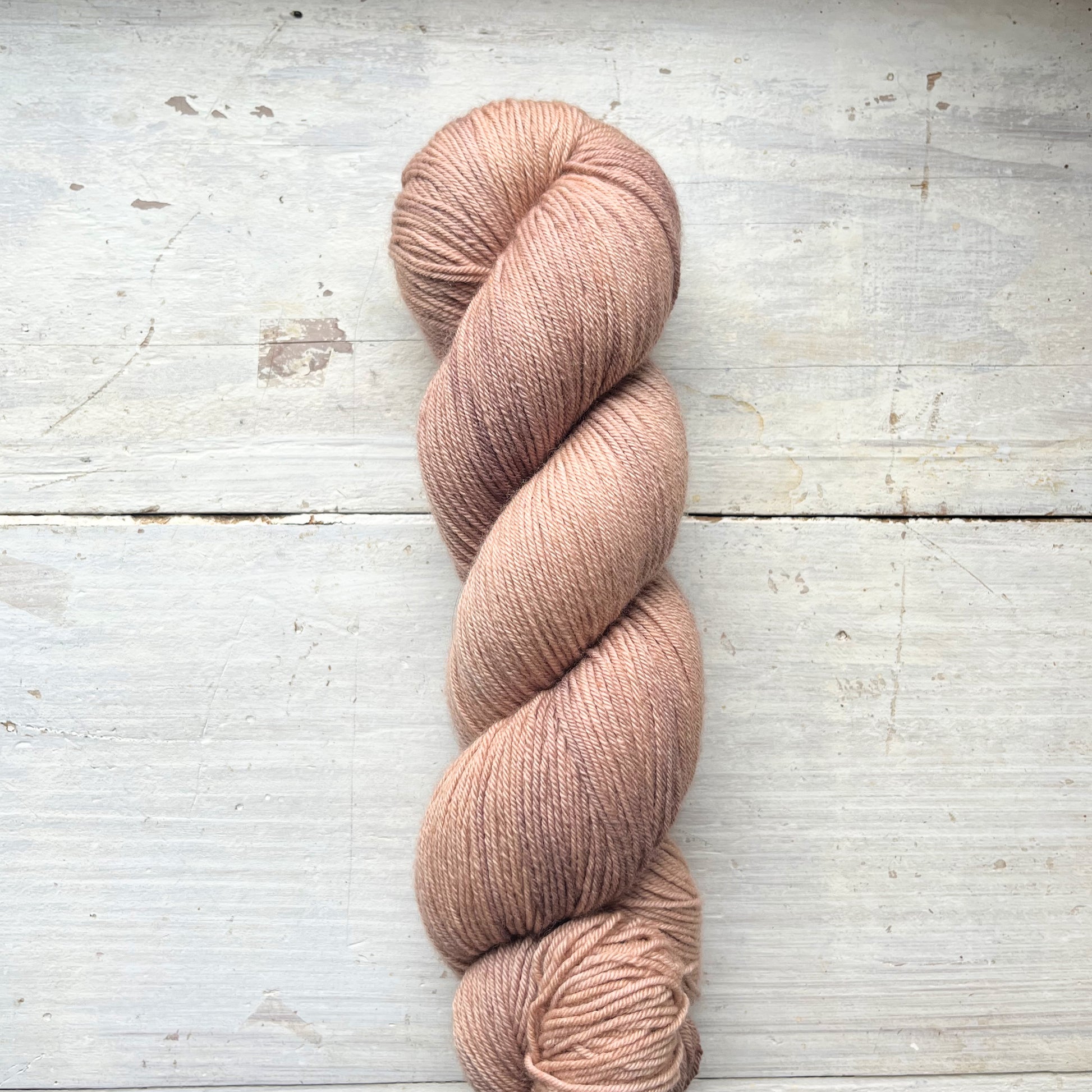 One of the first bases offered by L'Écheveau Solidaire, a 100% non-superwash merino fingering weight, was replaced by the Solstice base when it was discontinued by the supplier.