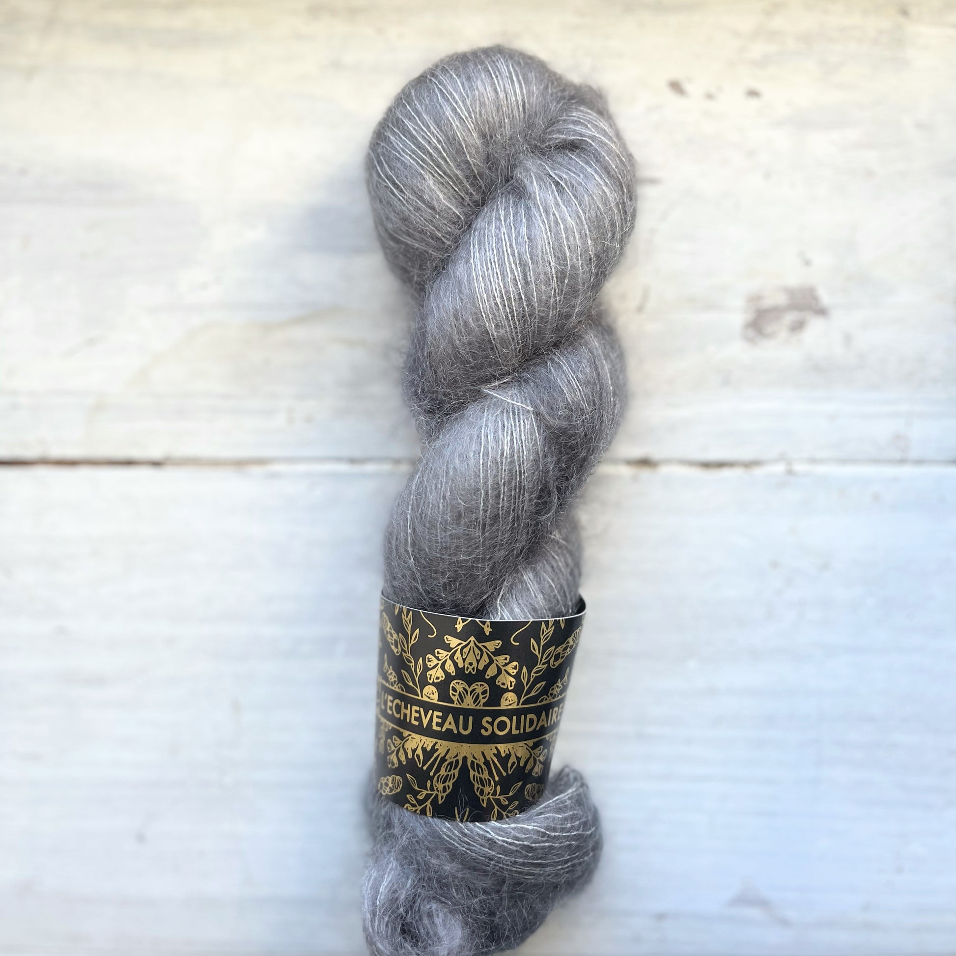 Elle est composée de kid mohair, (une fibre très douce et fine) qui provient de jeunes chevreaux. Le kid mohair est associé à de la soie, qui apporte un coté brillant au fil.