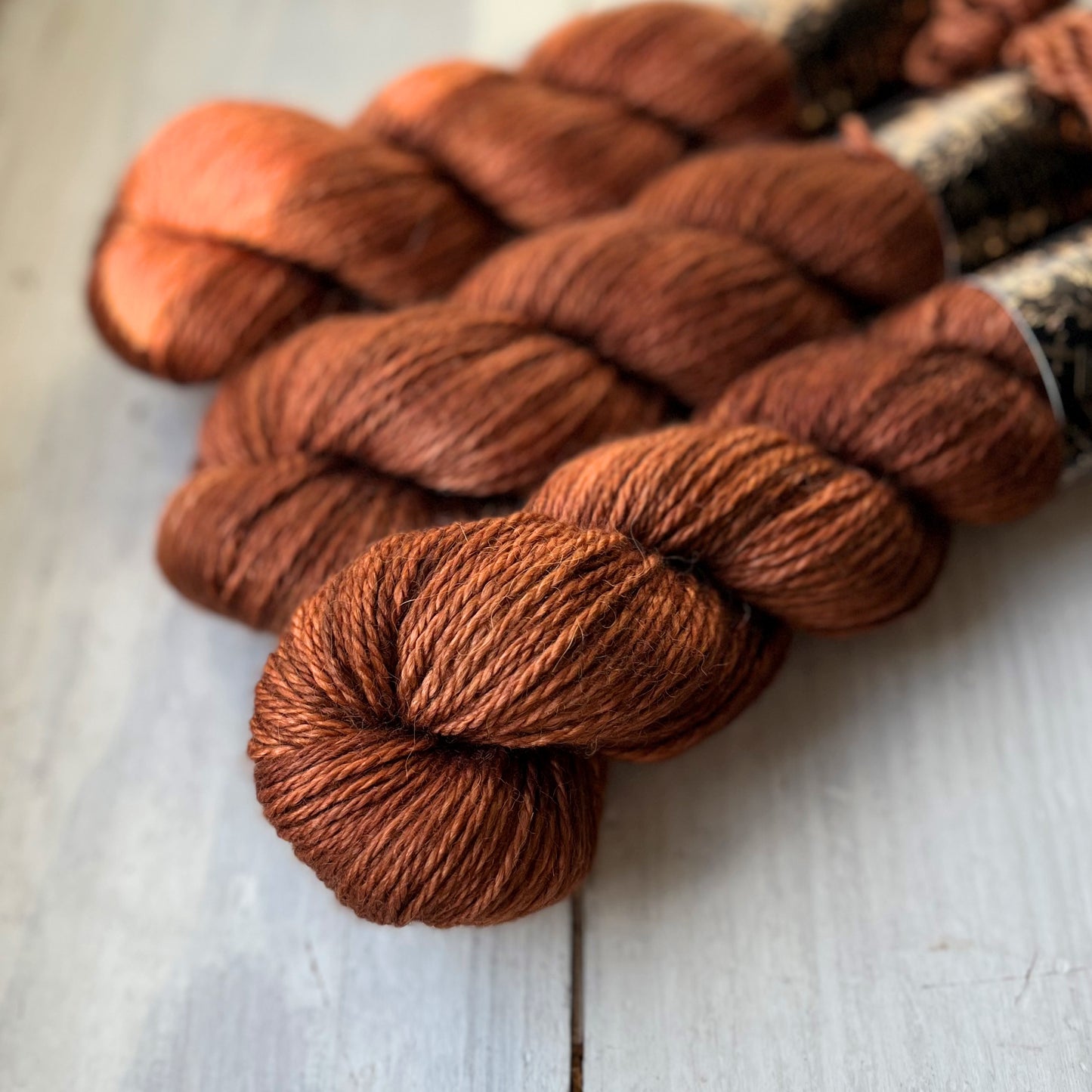 Composé de 70 % bébé alpaga, 20 % soie, 10 % cachemire. Les écheveaux font 166m pour 100g mais ils sont généreux, la plupart font un peu plus de 100g.