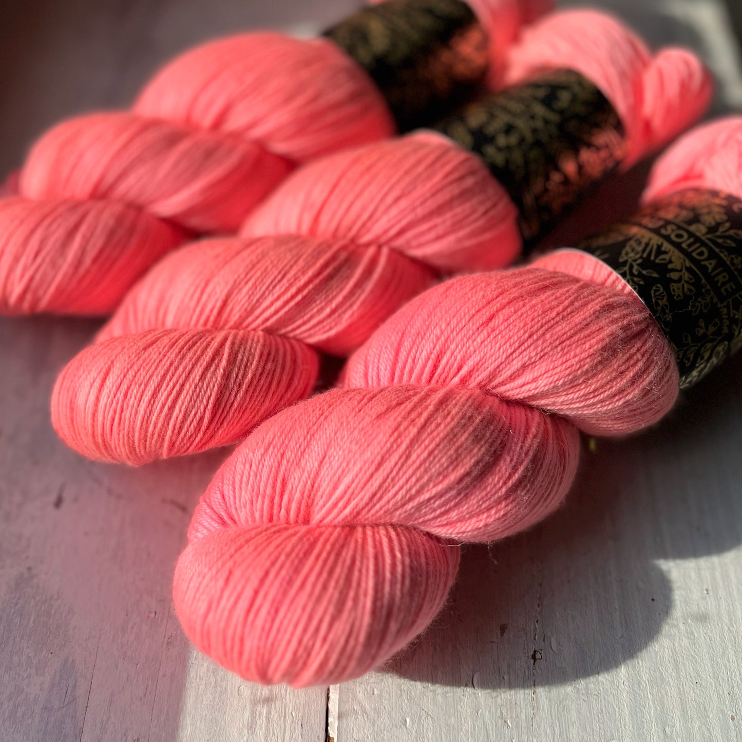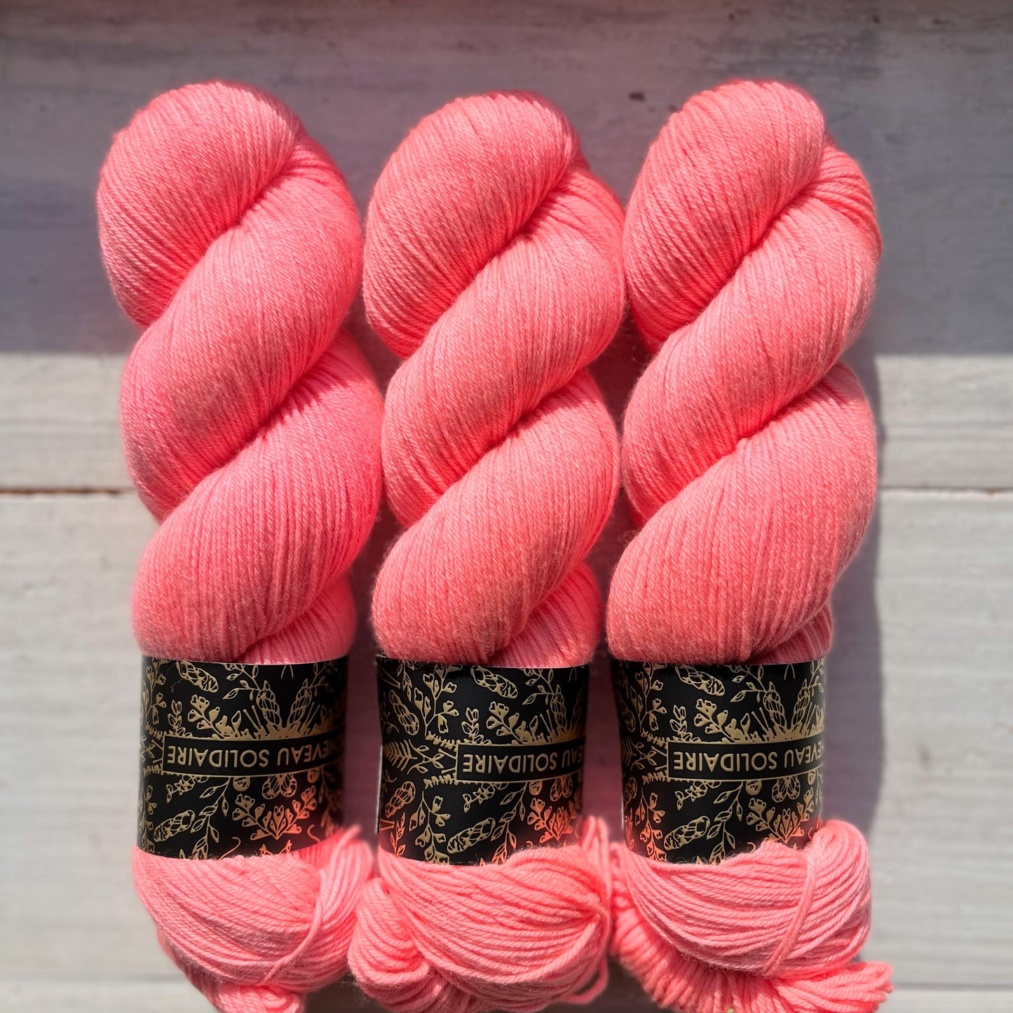 Elle est indiquée comme faisant 360m mais c'est bien une épaisseur fingering. Je suspecte que la laine se rétracte à la teinture, étant très élastique je préfère donc annoncer 360m au lieu de 400m.