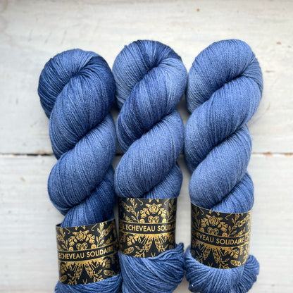 Elle est indiquée comme faisant 360m mais c'est bien une épaisseur fingering. Je suspecte que la laine se rétracte à la teinture, étant très élastique je préfère donc annoncer 360m au lieu de 400m.