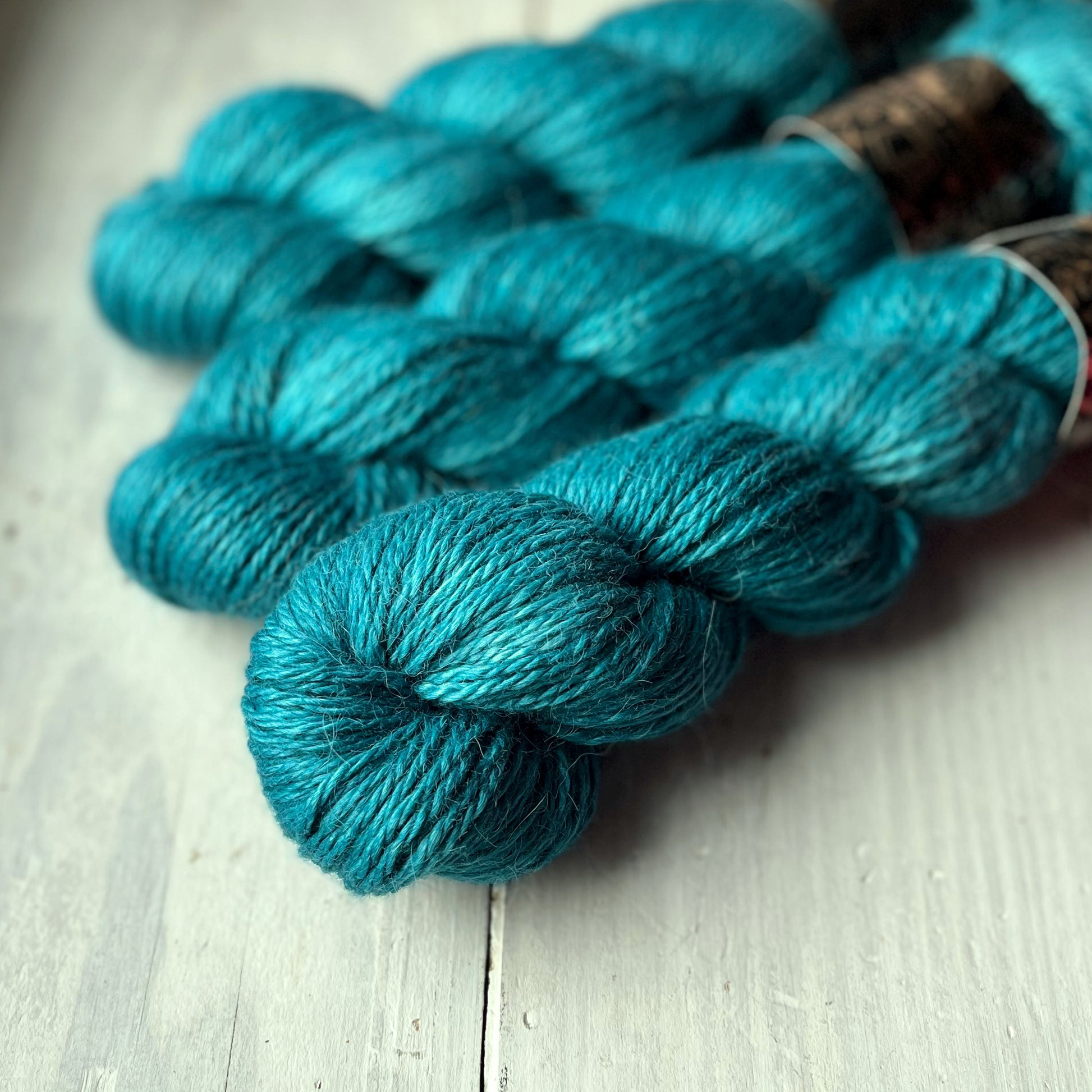 Composé de 70 % bébé alpaga, 20 % soie, 10 % cachemire. Les écheveaux font 166m pour 100g mais ils sont généreux, la plupart font un peu plus de 100g.