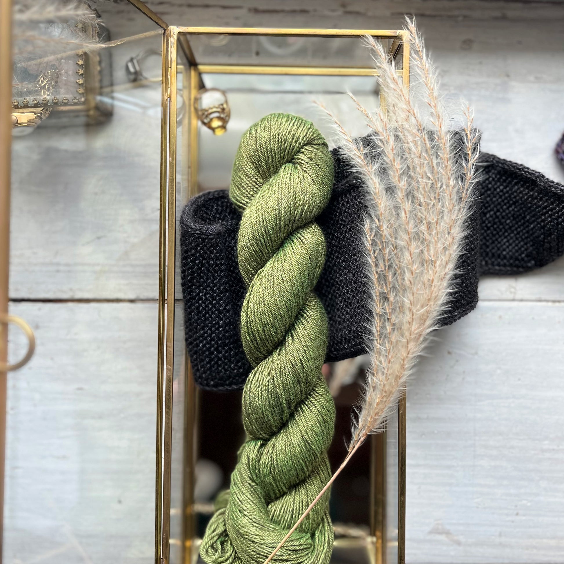 Et le clou du spectacle, un écheveau de 50g d'ÉQUINOXE. Cette base luxueuse est extrêmement douce, brillante et soyeuse, grâce à l'association du yak et de la soie. Ces deux fibres en font une base d'exception, à tricoter au moins une fois dans sa vie !Le yak est naturellement gris, ce qui donne de la profondeur à la teinture.