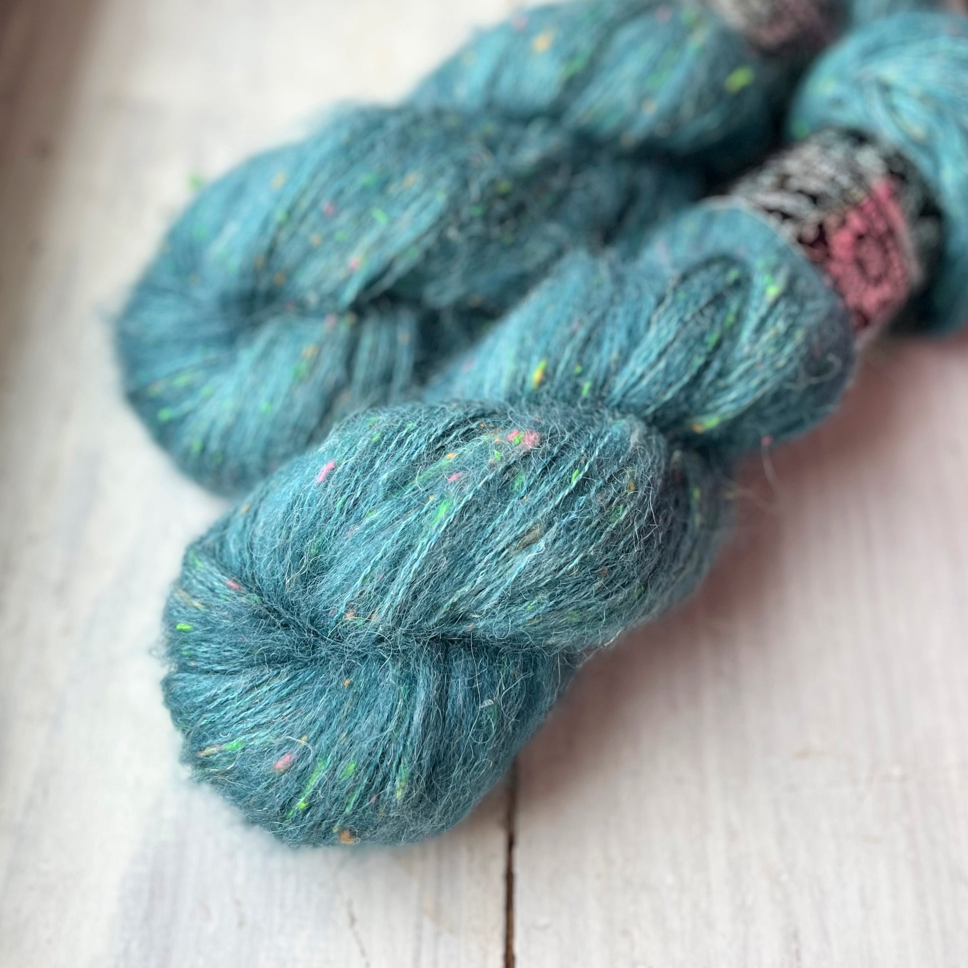 Un brin de nep donegal est ajouté au mérinos superwash afin de créer un effet tweedé, parfait pour donner un coup de pep's à vos tricots !